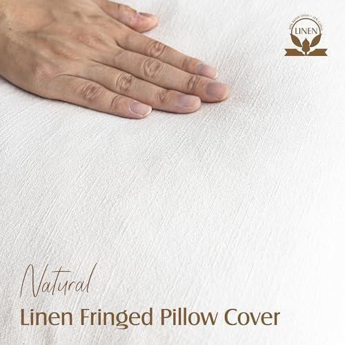 Doğal Keten Saçaklı Beyaz Kırlent