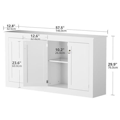 Konsol dolabı, 58 cm genişliğinde ve 30 cm yüksekliğinde kompakt bir tasarıma sahiptir. Yüksek yoğunluklu MDF malzemeden üretilmiştir. Dört ayrı kapısı ve dört rafı bulunmaktadır. İki ayrılabilir orta raf, eşyalarınızı düzenlemek için esnek bir alan sağlar.