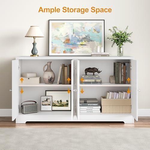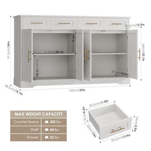 Geniş bir depolama alanına sahip olan bu konsol, 152 cm genişliğinde ve 91 cm yüksekliğinde. Dört ayrı dolap bölmesi ve çekmecesi bulunuyor. Her bölme kolay açılır mekanizmayla donatılmış. Mutfak, salon veya yemek odası gibi farklı alanlarda kullanılabilecek çok yönlü bir aksesuar.