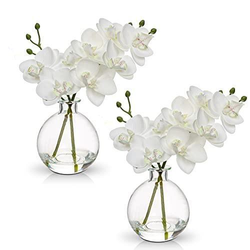 Zarif ve modern bir dekoratif aksesuar olan bu yapay orkide aranjmanı, iç mekan dekorasyonuna zarafet katan bir tasarım harikası. İki ayrı şeffaf cam vazoda sunulan beyaz orkide dalları, doğallığı yakalayan detaylarıyla dikkat çekiyor.