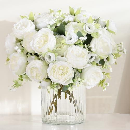 Bu dekoratif aksesuar, beyaz rengin saflığını ve zarafetini yansıtan yapay çiçek buketi, iç mekan düzenlemeleri için ideal bir üründür. Yumuşak dokulu, katmanlı beyaz peoniler ve narin yeşil yapraklardan oluşan aranjman, doğallığı ve inceliği bir arada sunmaktadır.