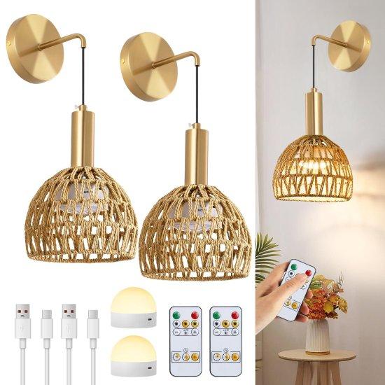 Altın Hasır Dokulu Kablosuz Bohem Duvar Aplikleri