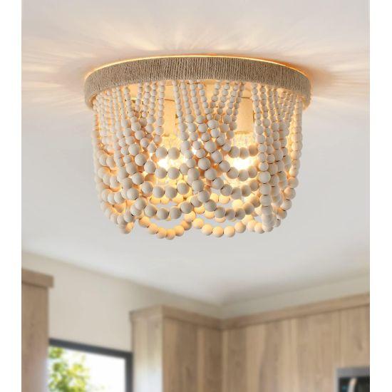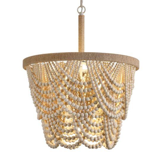 Doğal ve zarif bir dekoratif aksesuar olarak karşımıza çıkan bu avize, bohem tarzın şık bir yorumunu sunuyor. Beyaz ahşap boncuklardan oluşan katmanları ve doğal ipli askı sistemiyle, mekanlara yumuşak ve sıcak bir atmosfer katan benzersiz bir aydınlatma ürünü.