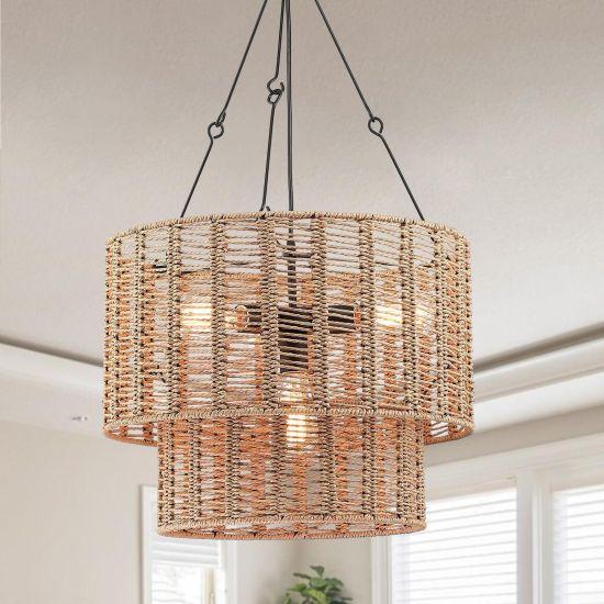 Özellikle bohem ve rustik tarzı seven dekorasyon meraklıları için ideal bir seçim. Mutfak adasının üzerine, yemek masasının üstüne veya oturma alanlarına asılarak mekana şıklık katabilir. Doğal malzemesi sayesinde kolayca temizlenir ve bakımı kolaydır.