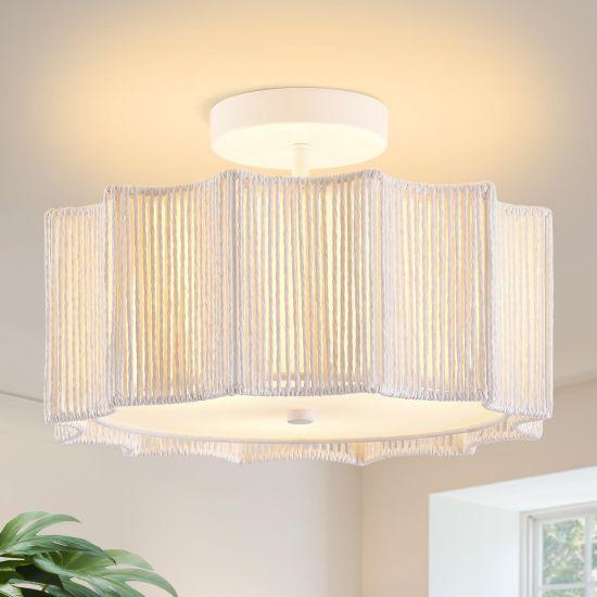 Bohem ve rustik tarzın mükemmel bir sentezi olan bu avize, modern ve geleneksel elementleri bir arada barındırıyor. Yumuşak beyaz tonlar ve doğal ip detayları, farklı dekorasyon stillerine kolaylıkla uyum sağlayabilecek bir tasarım sunuyor.