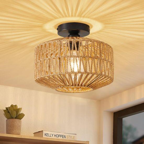 Modern bohem tarzın şık bir yansıması olan bu tavan armatürü, doğal malzemelerin zarafetini ve modern aydınlatma teknolojisini mükemmel şekilde birleştiriyor. El örgüsü rattan dokusuyla dikkat çeken ürün, sıcak ve samimi bir atmosfer yaratmak için ideal.