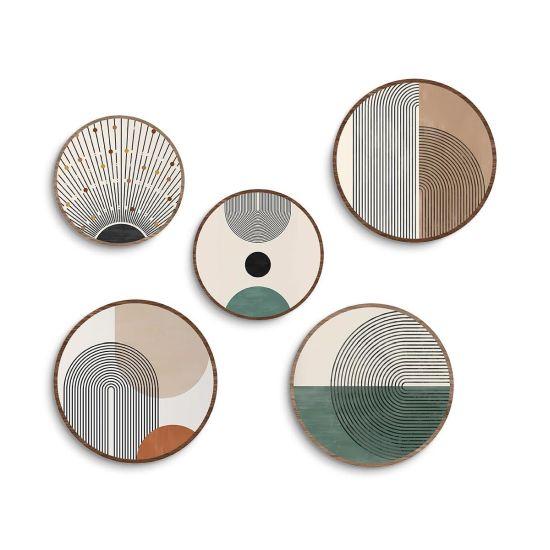 Bu set, duvarınızı adeta bir sanat galerisine dönüştürüyor. Tabakların asimetrik dizilimi, mekana hareket ve ritim katıyor. Dairesel formlar, gözü yumuşak bir şekilde yönlendirerek huzurlu bir görsel akış sağlıyor.