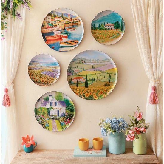 Boyut Çeşitliliği: Farklı büyüklükteki tabakların bir araya getirilmesi, duvarda dinamik ve ilgi çekici bir görünüm oluşturuyor.