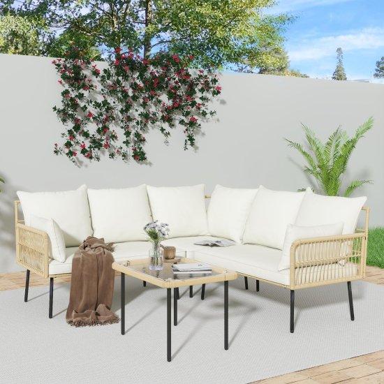 Yumuşak Dokulu Bej Hasır Bahçe Mobilya Takımı