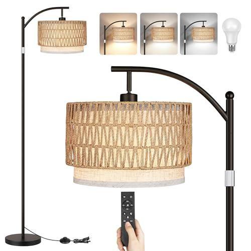 Hasır Dokulu Bohem Stil Uzaktan Kumandalı LED Lambader