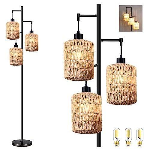 Hasır Örme Bohem Tarzı Üç Başlıklı Lambader