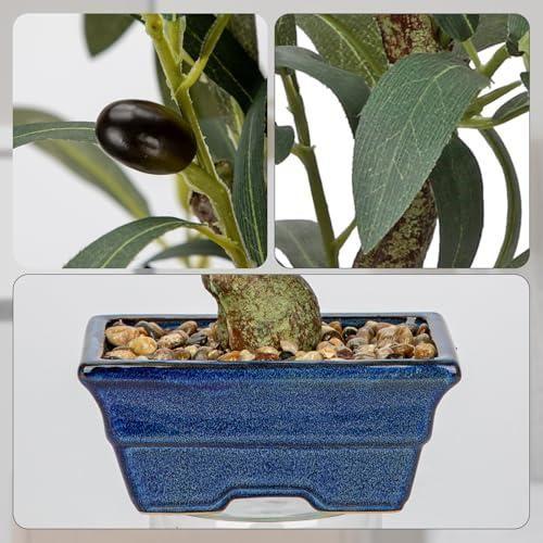 Doğal Görünümlü Mavi Saksılı Mini Bonsai Zeytin Ağacı