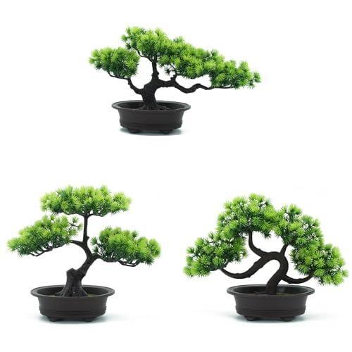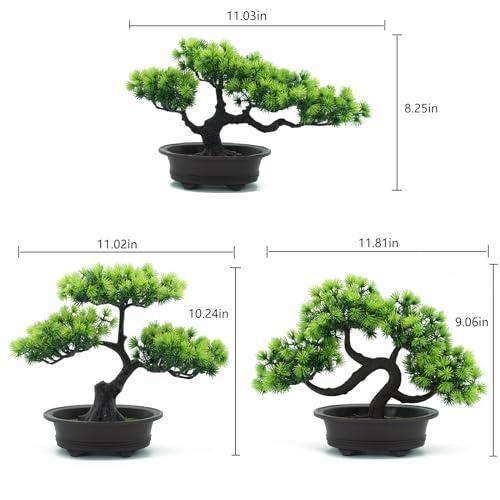 Set, üç farklı boyutta ve şekilde çam ağacı bonsaisinden oluşur. Her bir bonsai, siyah seramik saksı içinde yerleştirilmiş, eğimli ve karakteristik dal yapısına sahip. Canlı yeşil tonlardaki yapraklar, doğal bir görünüm sergiliyor.