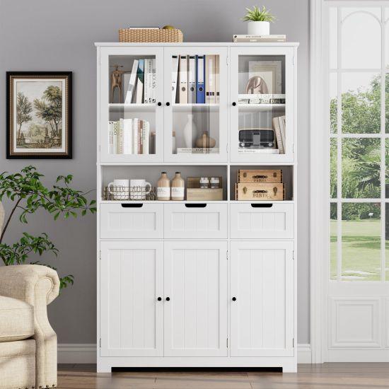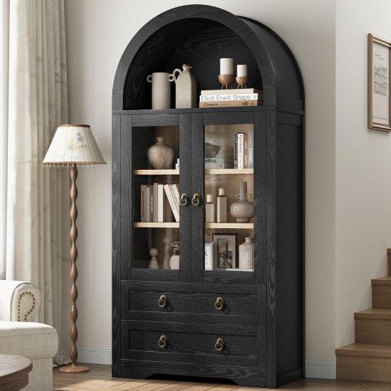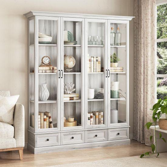 Cam kapılarının arkasında 6 farklı rafı bulunmaktadır. İki adet ayarlanabilir raf sayesinde çanak, çömlek, kitap veya dekoratif eşyalarınızı istediğiniz şekilde yerleştirebilirsiniz. Alt kısmındaki çekmece ise ekstra saklama alanı sağlıyor.