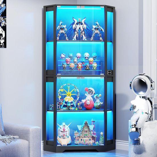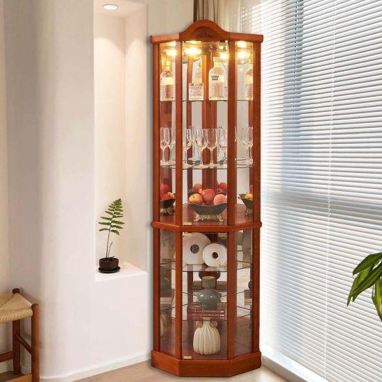 Modern ve klasik çizgileri harmanlayan bu köşe vitrini, koleksiyon parçalarınızı ve değerli eşyalarınızı sergilerken aynı zamanda dekoratif bir unsur olarak da işlev görür.