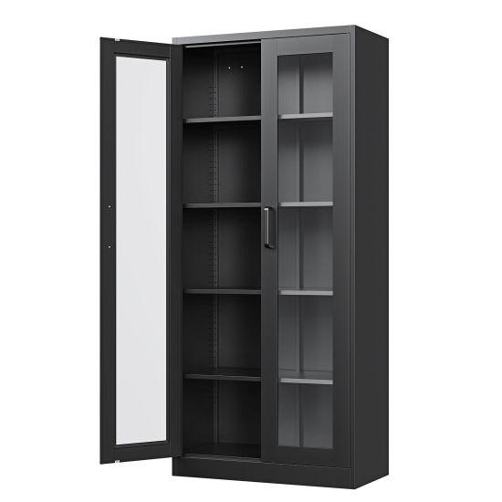 Antrasit Gri Çok Amaçlı Cam Vitrin Dolabı