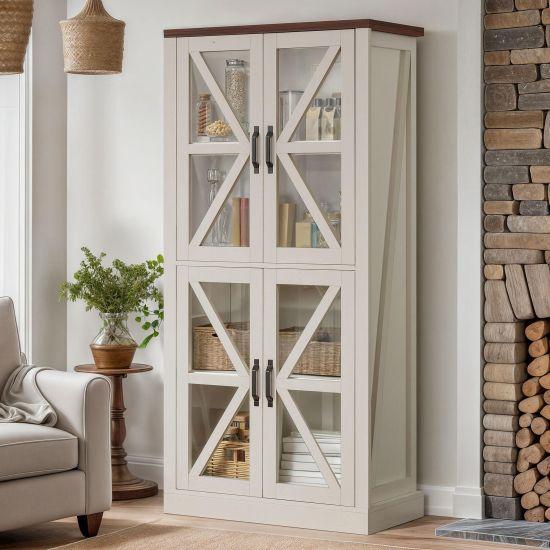 Bünyesinde 4 adet ayarlanabilir raf bulunduran bu dekoratif aksesuar, kitaplardan koleksiyon parçalarına, içecek takımlarından süs eşyalarına kadar çeşitli eşyaları düzenli ve görünür şekilde depolama imkanı sağlıyor. Yüksek tanımlı temperli cam kapıları sayesinde içerideki ürünler net bir şekilde görülebiliyor.