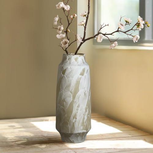 Dokulu Krem Renkli Rustik Büyük Salon Vazosu