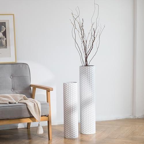Bu dekoratif vazo seti, modern ve şık ev dekorasyonları için ideal bir aksesuar olarak öne çıkıyor. İki farklı boyutta (69 cm ve 53.5 cm) tasarlanan vazolar, benzersiz altıgen dokulu yüzeye sahip. Mat siyah rengi ve petek desenli dokusuyla dikkat çeken bu vazo seti, minimalist ve endüstriyel tasarım tarzını yansıtıyor.