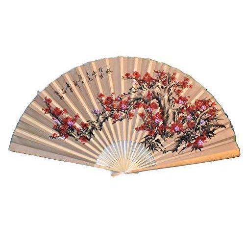 Geleneksel Doğu sanatının zarafetini yansıtan bu büyük yelpaze, iç mekân dekorasyonuna benzersiz bir estetik katar. Yaklaşık 60 cm genişliğinde ve 35 cm yüksekliğinde olan ürün, altın sarısı (tannish gold) bir zemin üzerine el yapımı boyama tekniğiyle işlenmiş kırmızı ve fuşya renkli kiraz çiçekleri motifiyle dikkat çekiyor.