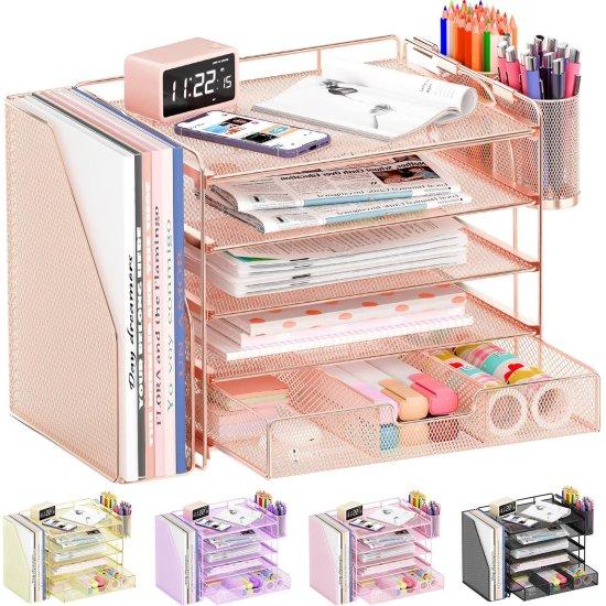 Ürün 5 katlı bir tasarıma sahip. Her kat farklı boyutlarda evrak, not kağıdı, dergi ve dökümanları düzenlemek için ideal. Alt kısmındaki çekmece küçük ofis malzemelerini saklamak için mükemmel bir alan sağlıyor. Yan tarafında bulunan kalem tutucu bölüm ise kalemlerinizi, kalemlikleri ve diğer küçük ofis gereçlerinizi düzenli tutmanıza yardımcı oluyor.