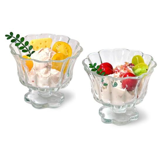 Her bir kase yaklaşık 350 ml (12 oz) hacme sahip. Kalın ve sağlam cam malzemeden üretilmiş olup, şeffaf yapısı içindeki lezzetli tatlıların rengini ve görünümünü mükemmel şekilde ortaya çıkarıyor.