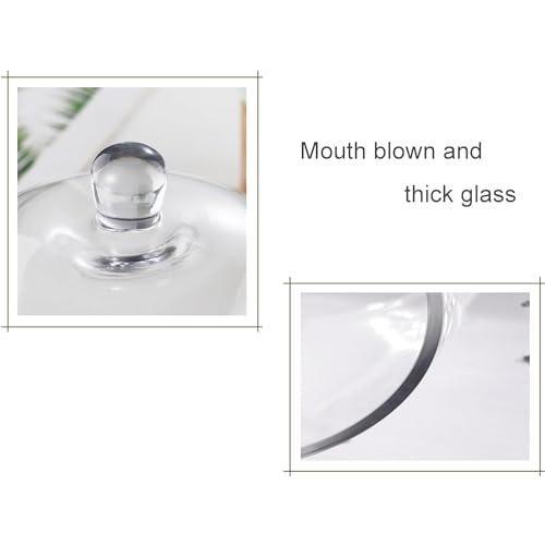 Bu dekoratif cam fanus, mutfak ve servis alanlarınız için zarif bir aksesuar niteliğindedir. Elle üfleme cam tekniğiyle yapılmış olup, yüzeyinde doğal küçük kabarcıklar bulunmaktadır. Bu detaylar, ürünün benzersiz ve el yapımı olduğunu gösterir.