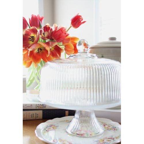 Şeffaf Çizgili Cam Kek Fanusu