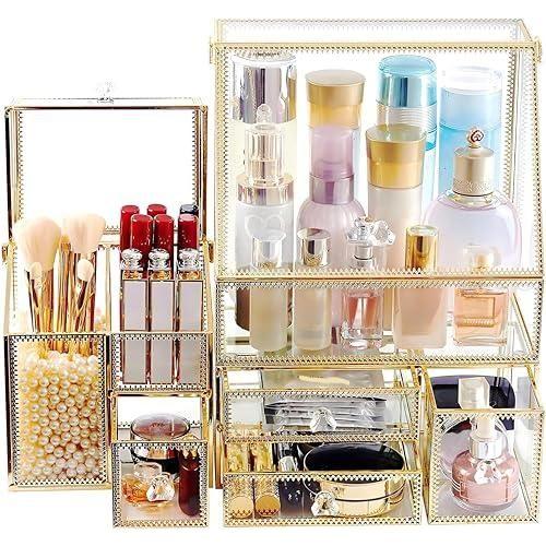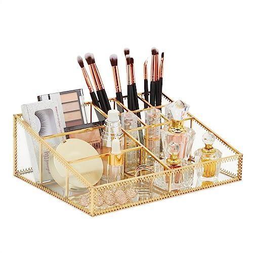 Zarif Altın Çerçeveli Makyaj ve Kozmetik Cam Organizeri