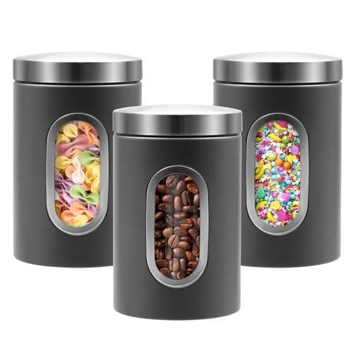 Gövdesi mat gri renkte olan kavanozlar, endüstriyel ve modern mutfak tasarımlarına mükemmel uyum sağlıyor. Farklı boyutlardaki kavanozlar sayesinde çeşitli gıda ürünlerini düzenli bir şekilde saklayabilirsiniz. Şeffaf pencere bölümleri, içerideki malzemelerin kolayca tanımlanmasına yardımcı oluyor.