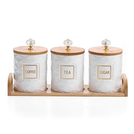 Mutfak düzeninin vazgeçilmez parçası olan bu dekoratif aksesuar seti, hem işlevsellik hem de estetik açıdan mükemmel bir tasarıma sahiptir. Üç farklı kavanozdan oluşan set, kahve, çay ve şeker için özel olarak tasarlanmıştır.
