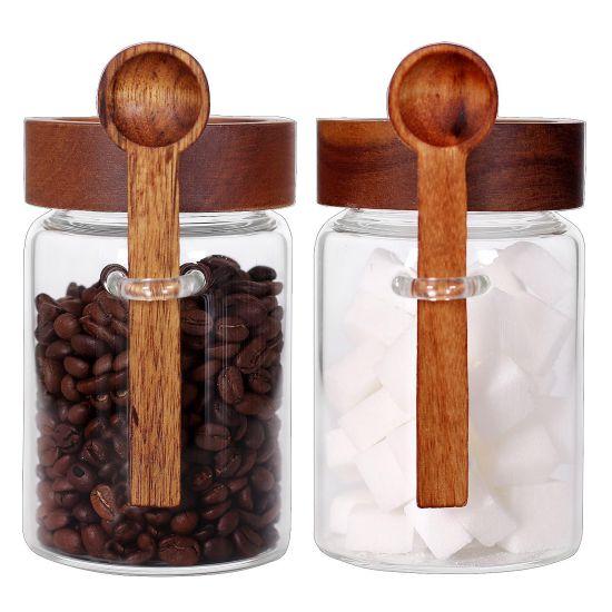 Modern Gri Ahşap Kapaklı Mutfak Saklama Kavanozu Seti