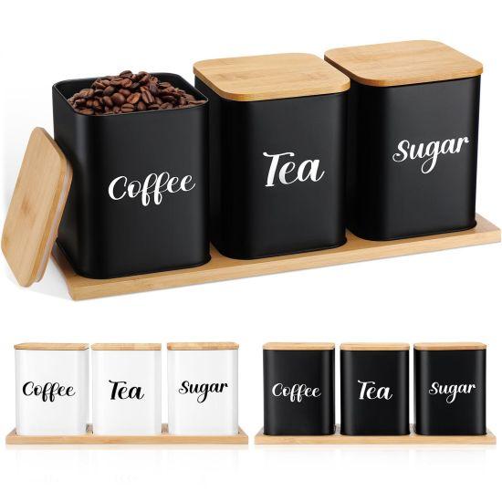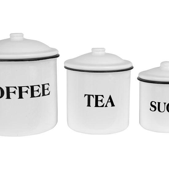 Modern ve rustik tarzı harmanlayan bu dekoratif ürün seti, mutfaklara şık bir dokunuş getiriyor. Üç farklı boyutta tasarlanan siyah metal kavanozlar, “Tea”, “Sugar” ve “Coffee” yazıları ile kullanım alanlarını net bir şekilde belirtiyor.