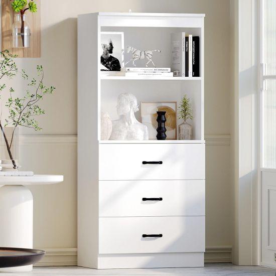 Beyaz Üç Çekmeceli Modern Depolama Kitaplığı