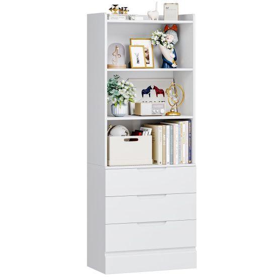 Bu çok fonksiyonel çekmeceli kitaplık, çocuk odaları için ideal bir depolama çözümüdür. Tamamen beyaz renkte tasarlanan ürün, modern ve temiz bir görünüm sergiler. Üç farklı çekmecesi ve çeşitli açık raflarıyla oyuncaklar, kitaplar ve diğer çocuk eşyaları için mükemmel bir organizasyon alanı sağlar.