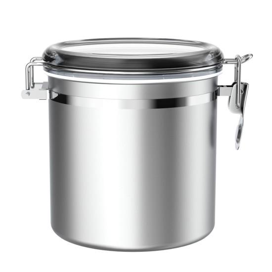 Mutfağınızın vazgeçilmez dekoratif aksesuarı olan bu paslanmaz çelik kavanoz, kahve çekirdeklerinizi ve öğütülmüş kahvenizi uzun süre taze tutmak için ideal bir çözüm sunuyor. Parlak gri metalik yüzeyi ve pürüzsüz dokusuyla hem fonksiyonel hem de şık bir görünüm sergiliyor.