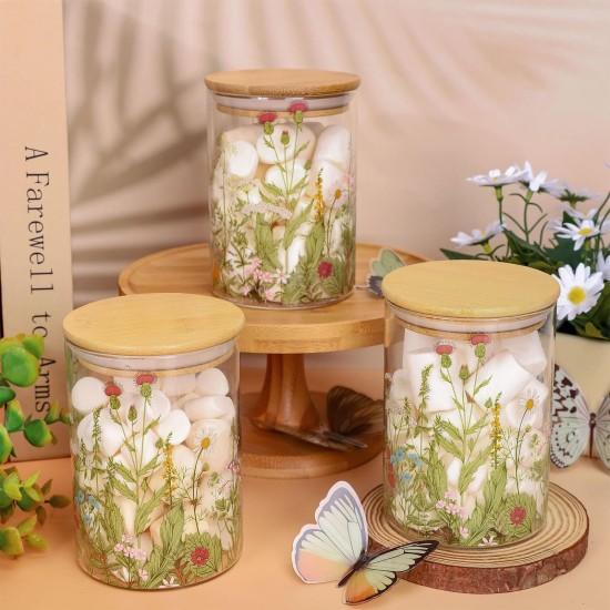 Doğal Çiçek Desenli Ahşap Kapaklı Cam Saklama Kavanozları