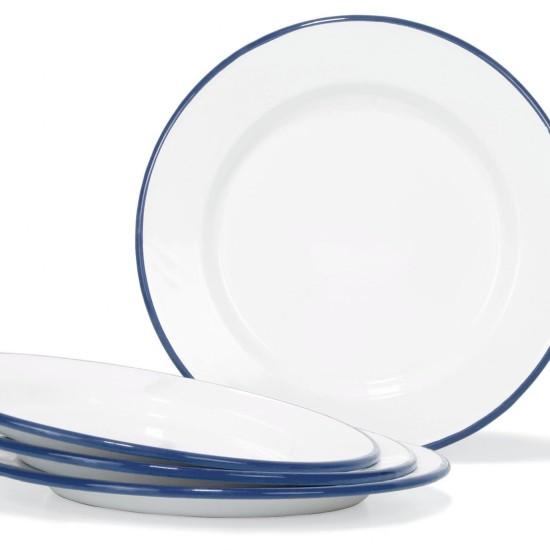 Beyaz Lacivert Çerçeveli Çinko Yemek Tabağı Seti