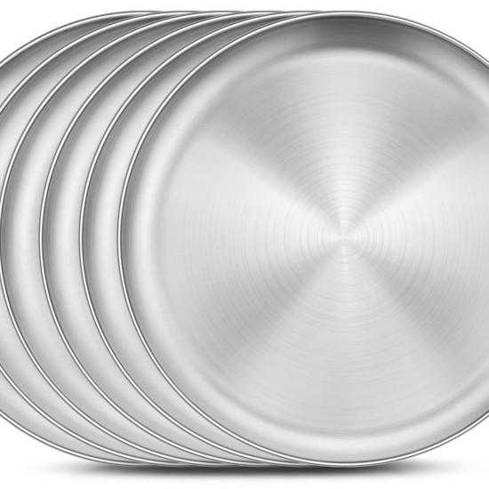 Paslanmaz çelik malzeme sayesinde uzun yıllar kullanılabilecek bu tabak seti, dayanıklılığı ve şık görünümüyle öne çıkar. Mikrodalga ve fırında kullanıma uygun olmayan bu tabaklar, sağlam ve hijyenik bir yemek deneyimi sunar.