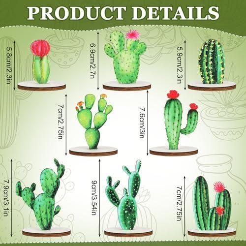 Yaklaşık 7 cm yüksekliğinde ve 0,5 cm kalınlığında hazırlanan bu dekoratif ürünler, endüstriyel ahşaptan üretilmiştir. Her bir kaktüs figürü, küçük bir ahşap stand üzerine monte edilmiş olup düz yüzeylerde kolayca sergilenebilir.
