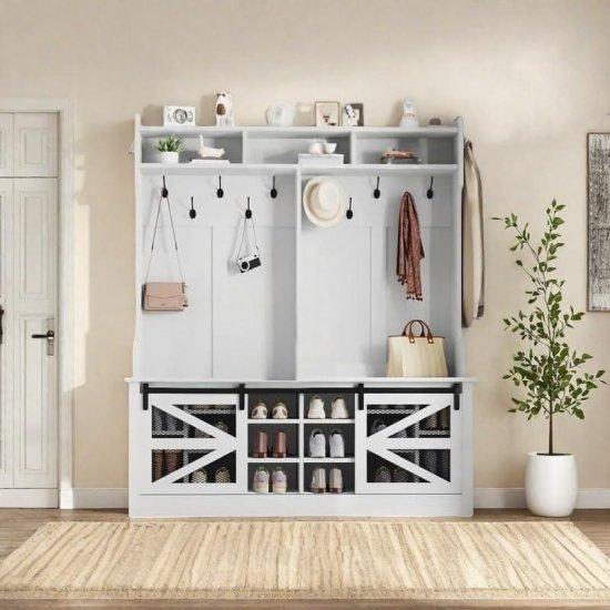 Rustik Beyaz Çok Fonksiyonlu Giriş Dolabı