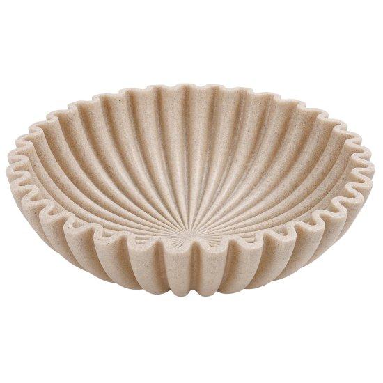 Bu dekoratif aksesuar, mutfak tezgahları, giriş masaları veya çalışma alanları için şık bir çözüm sunar. Yapay taş malzemeden üretilen kase, yumuşak bej tonunda zarif bir renk seçeneği sunuyor.
