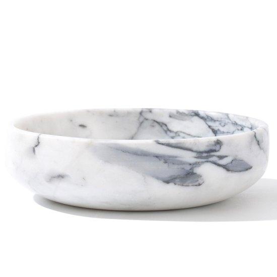 Doğal mermerden üretilen kase, yüzey dokusundaki pürüzsüz ve parlak görünümüyle dikkat çekiyor. Gri damarları beyaz zemin üzerinde zarif bir şekilde dağılmış, adeta bir sanat eserine dönüşmüş durumda. Çok yönlü kullanımıyla ev içi düzenlemelerinize şıklık katabilir.