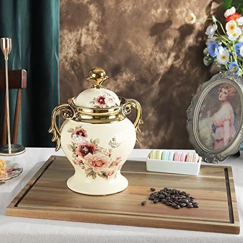 Yüksek kalite seramik malzemeden üretilen ürün, yaklaşık 1.5 kg ağırlığında ve 25 cm boyutlarındadır. Altın rengi kapaklı ve kulplu tasarımı, ürüne zarif ve şık bir görünüm kazandırıyor. Parlak ve pürüzsüz yüzeyi hem görsel hem de dokunsal açıdan oldukça çekici.