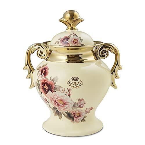 Krem Renkli Vintage Çiçek Desenli Seramik Dekoratif Küp