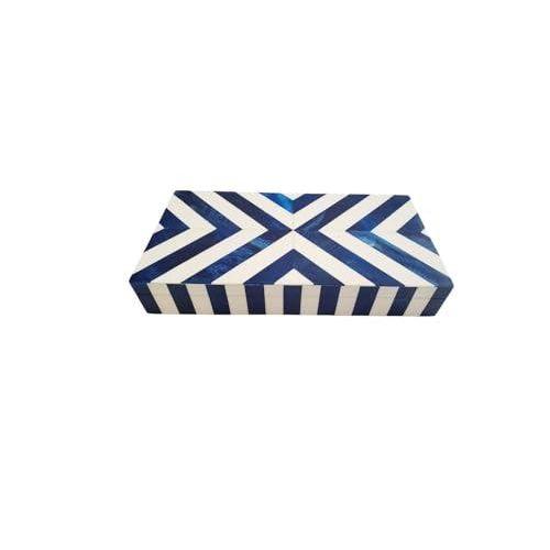 Bu dekoratif kutuda, geleneksel el işçiliğinin modern tasarımla buluştuğu benzersiz bir ürün karşımıza çıkıyor. Chevron desenli kutu, mavi ve beyaz renklerin çarpıcı kontrast uyumunu sergiliyor.