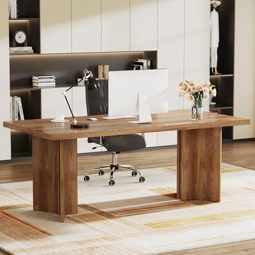 Bu dekoratif çalışma masası, sıcak ahşap tonlarıyla modern ve şık bir çalışma alanı yaratmak için tasarlanmıştır. Masanın yapısı oldukça sağlam ve dayanıklıdır. Yaklaşık 160 cm genişliğinde ve 80 cm derinliğinde olan masa, 4-6 kişinin rahatça çalışabileceği geniş bir çalışma alanı sağlar.