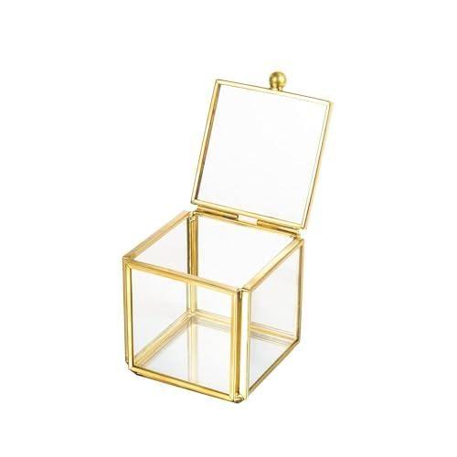 Bu dekoratif cam kutu, zarafet ve işlevselliği bir arada sunan şık bir aksesuar. Parlak altın çerçeveli şeffaf cam yapısı, modern ve minimalist bir tasarıma sahip. Küçük boyutları (5,5 x 5,5 x 5,5 cm) sayesinde pratik kullanım alanları sunuyor.