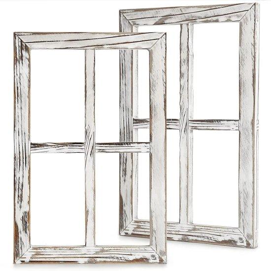 Bu dekoratif pencere çerçeveleri, kırsal ve nostaljik bir atmosfer yaratmak isteyen mekanlar için ideal bir aksesuar. İki adet beyaz renkte tasarlanan ürün, eskitilmiş ahşap görünümüyle vintage tarzı yansıtır.