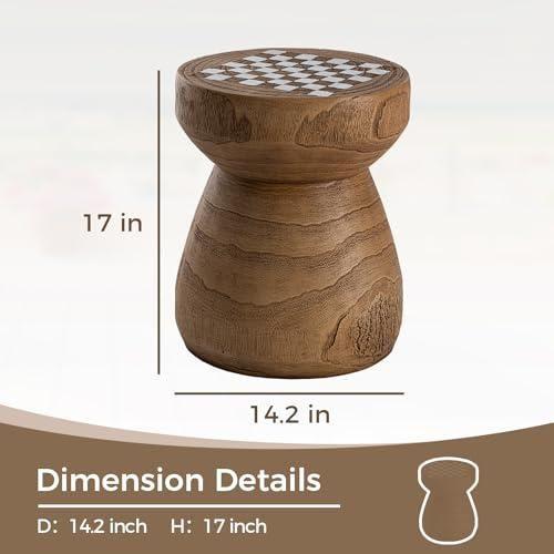 Bu dekoratif sehpa, benzersiz tasarımı ve çok işlevli yapısıyla dikkat çeken bir mobilya parçasıdır. Ahşap görünümlü el işçiliği ile üretilmiş sehpa, satranç tahtası desenine sahip yuvarlak bir üst yüzeye sahiptir. Dokulu ve katmanlı ahşap dokusuyla doğal bir görünüm sergiler.